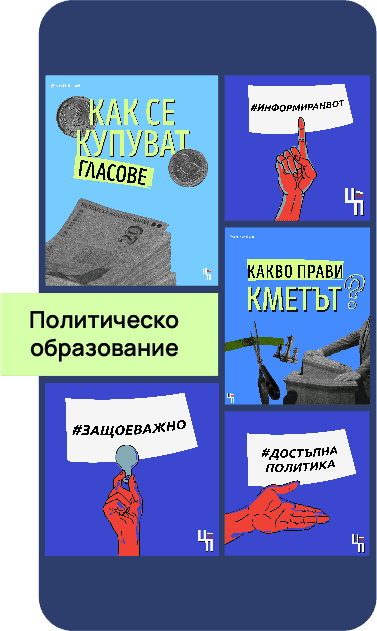 Екипът ни е създаден изцяло от доброволци и дълбоко вярваме, че промяната и по-добрата среда зависят от нас - гражданите. С тази цел разработихме първия граждански речник, провеждаме кампании за медийна и финансова грамотност, създадохме платформата „Подай сигнал”. Можеш да подкрепиш работата ни чрез дарение.